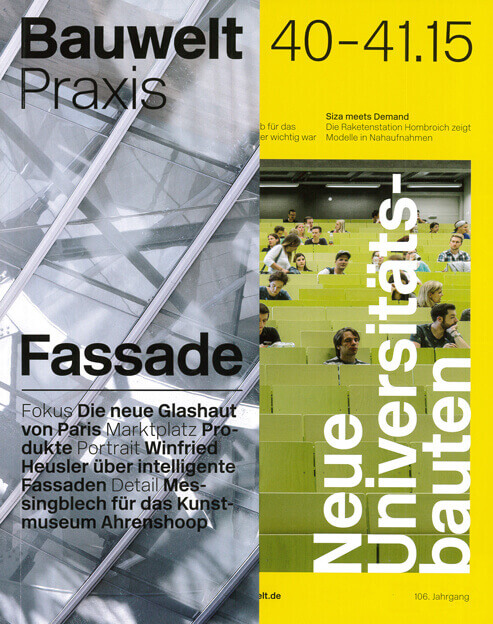 Die dynamische Fassade der Hochschule Niederrhein wird in der Bauwelt 40-41.15 besprochen.